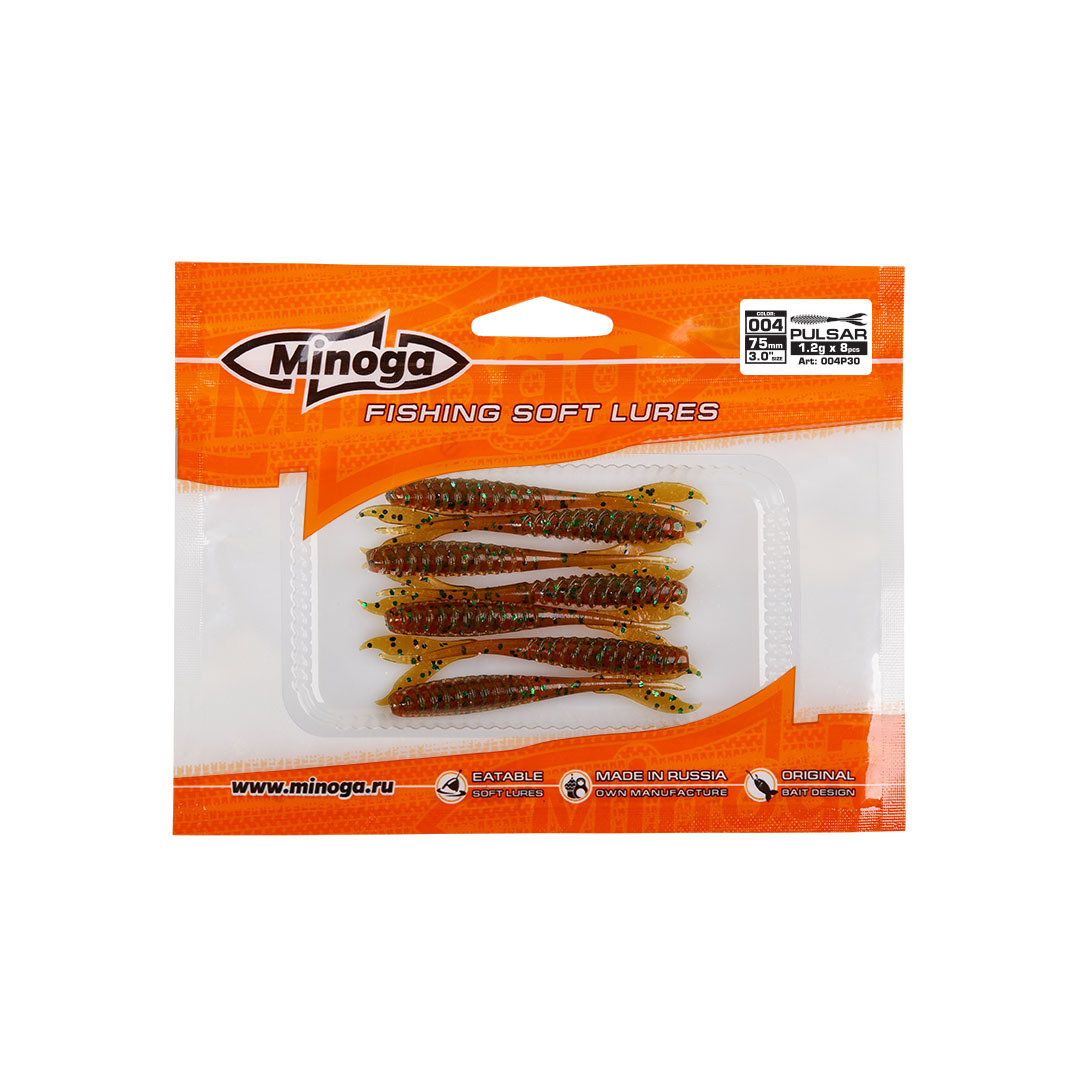 Слаг Minoga PULSAR имеет тело довольно объемное, ребристое плавно переходит в гибкий и крайне подвижный хвост, заставляя тем самым, обратить на себя внимание любого, даже самого пассивному хищника! Pulsar делается, как и все приманки MINOGA из мягкого съедобного силикона, с содержанием как вкусовой, так и ароматической добавки. Основным объектом ловли на данную приманку является окунь, судак и щука.