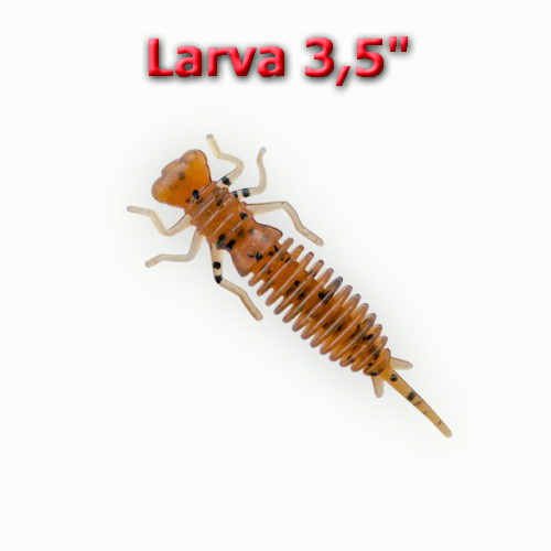 Как ни странно, лучше всего работают не точные копии насекомого – а те приманки, которые специально разработаны с учетом особенностей восприятия хищника. Именно такова Larva: очень реалистичная голова и грудная часть личинки с тоненькими лапками переходит в массивное плоское тело, сплошь покрытое кольцевыми ребрами. У живой букашки этого нет – зато такая поверхность тела обеспечивает точнейшую имитацию ощущений хищника, схватившего нежное тельце настоящей добычи. Ребрышки сминаются в пасти, они контактируют со вкусовыми рецепторами рыбы по увеличенной в несколько раз поверхности, вовсю выделяя включенные в состав материала соль и натуральный аттрактант. Когда не клюет ни на что – выручит только Larva!